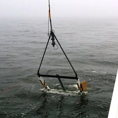 A multi-electrode streamer is towed through the water, measuring the resistance of the surrounding water and sub-sea ground conditions.